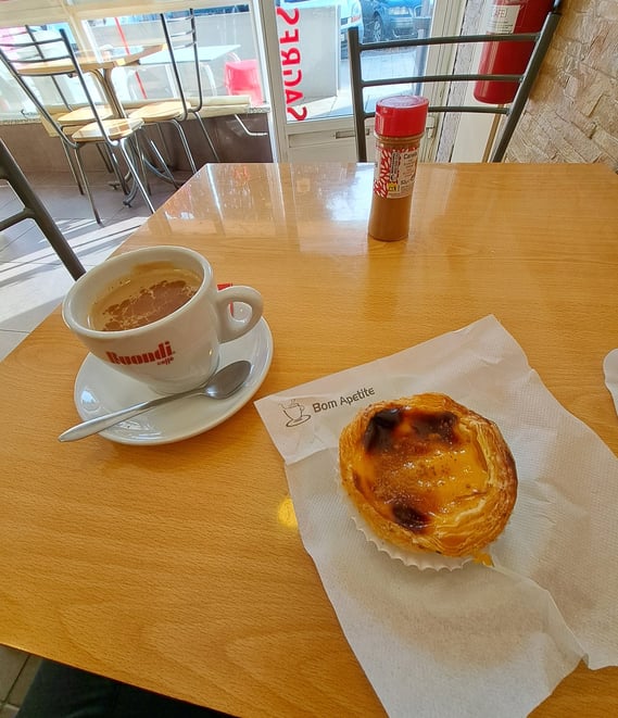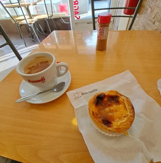 My first full day in Porto was a bit of a blur. I awoke in the morning after a much-needed 12 hour sleep. I got myself together, packed my backpack with necessary documents, electronics, and some tap water, which was all I had to eat or drink. My AirBnB has wifi, a bed and an unheated bathroom, but not much else. Still without a functioning phone outside of my room, I studied a map and decided to walk to the Metro station and see if I could figure out how to get back to the airport. As I walked up my street, I noticed a tiny cafe and stopped in. There, I had my first meal in about 30 hours. For a mere €1.30, I had my first Pastel da Nata and a coffee with milk. It was simply delicious!